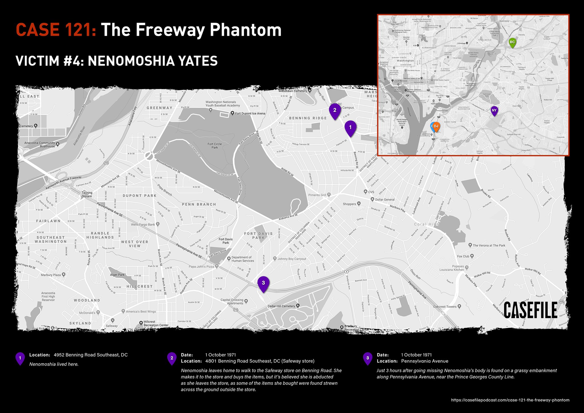 Casefile True Crime Podcast On Twitter Case 121 The Freeway Phantom Pictured Are Maps Relating To The Cases Of Nenomoshia Yates Brenda Woodard Amp Diane Williams 1 Map Relating To Each Victim